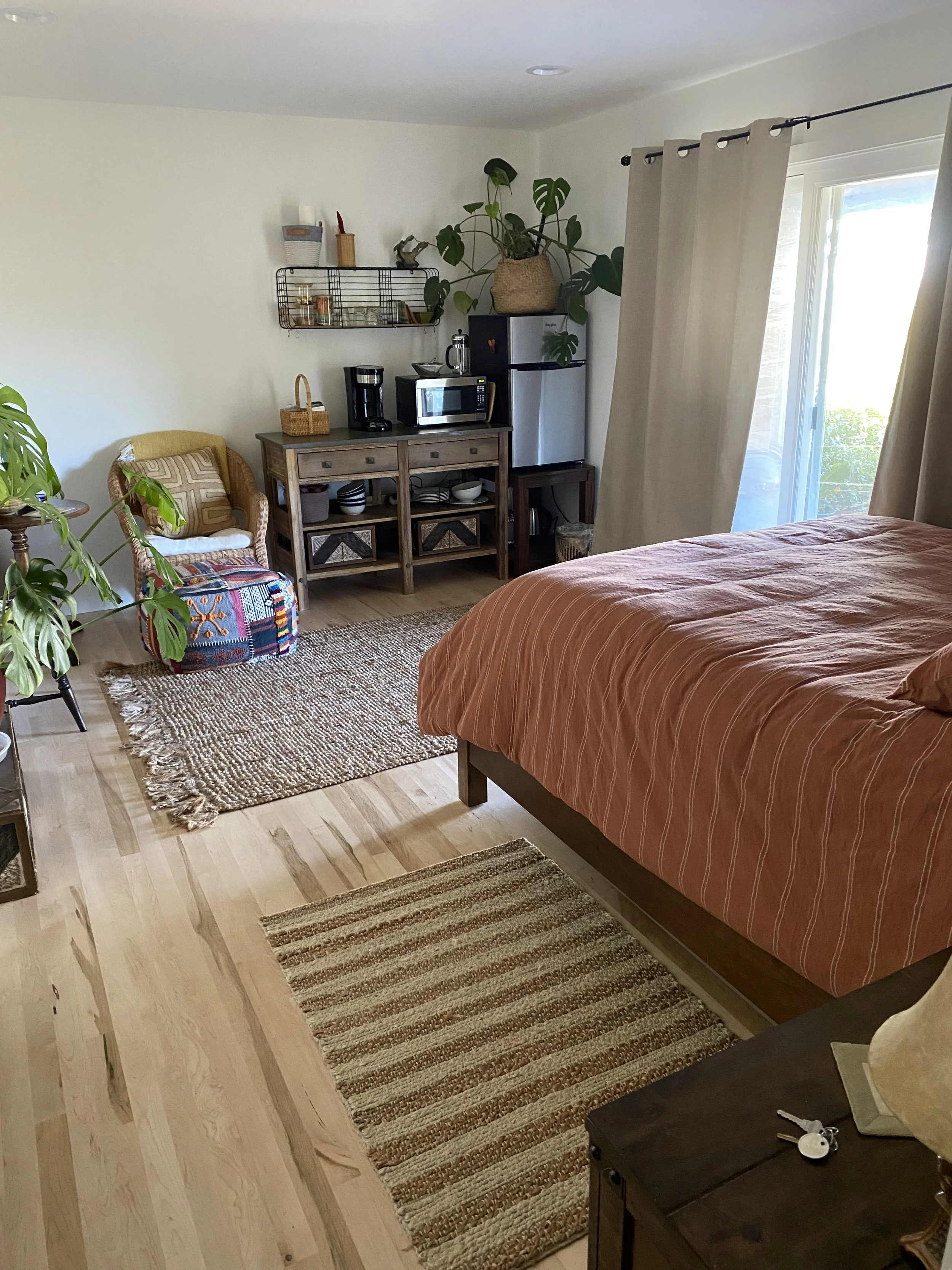 The Guest Suite has 2 comfy bedrooms with a king and queen bed, a kitchenette, bathroom and a great outdoor area for sitting and enjoying the views.