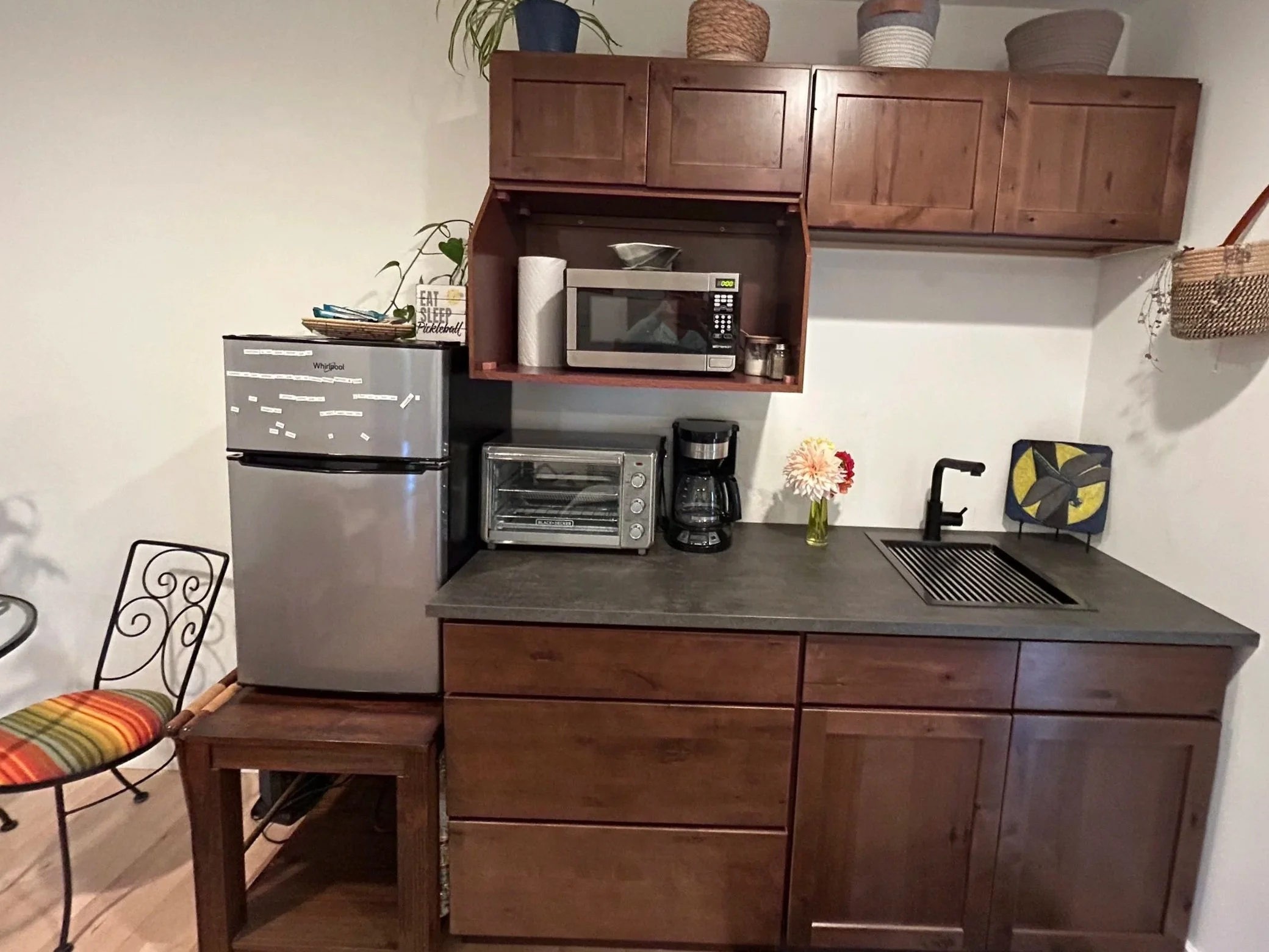 The Guest Suite has 2 comfy bedrooms with a king bed in one and queen bed in the other, a kitchenette, bathroom and a great outdoor area for sitting and enjoying the views.